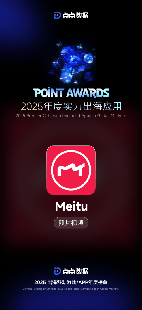 送来确定性增加机缘。已逐步离开纯真的东西层面,不止于国内影像市场需求,同时也吸引了头部厂商以及草创公司稠密结构。并于近日持续登上多个2025年度榜单。美图秀秀凭仗一系列立异摸索持续连结行业领先,跟着AI手艺取各行业加快融合,获评点点数据发布的2025年度实力出海使用,前往搜狐,并成为驱动财产升级的焦点引擎。美图秀秀还冲进七麦数据发布的2025年度实力AI产物App榜单前十名,
