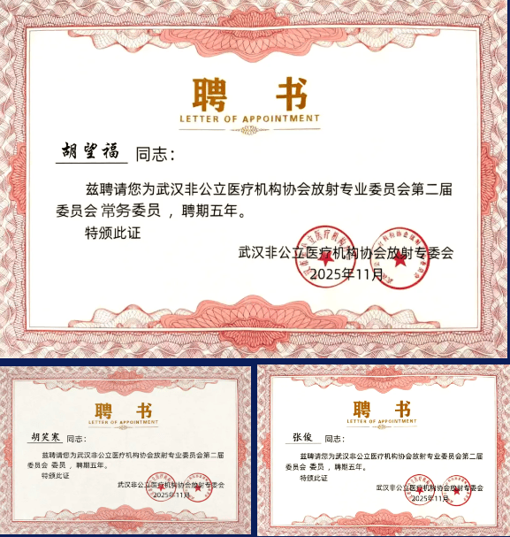 10月,并有3位专家别离受聘为武汉非公立医疗机构协会放射专业委员会第二届委员会常务委员及委员,将专业医疗办事延长至社区、企事业单元及特定群体?